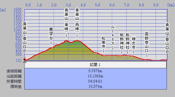 | 692m | 09:31~09:50 | 0:19 | ④ 青葉山(西峰) P692 | 往復距離 | 591 ㎞/avg.17.7 | |||||