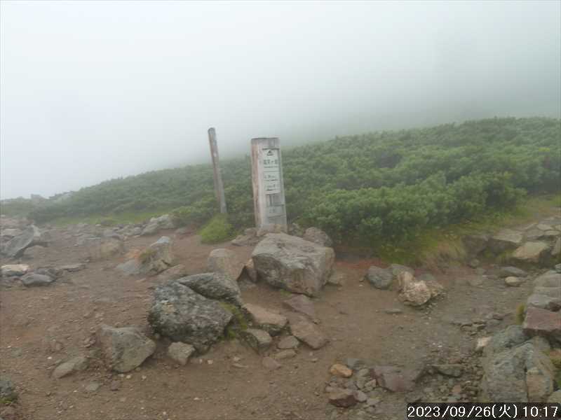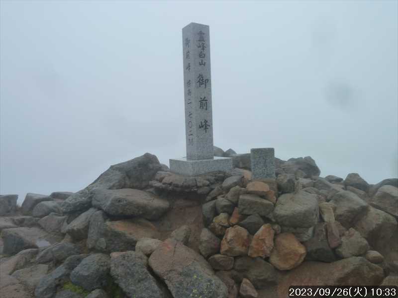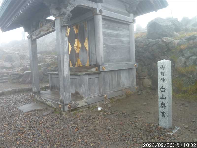 | 2702m | 10:33~10:44 | 0:11 | ⑥ 白山(御前峰) △2702.1 | (着)19:40 23 ℃ (発)04:10 22℃ | ||||||
