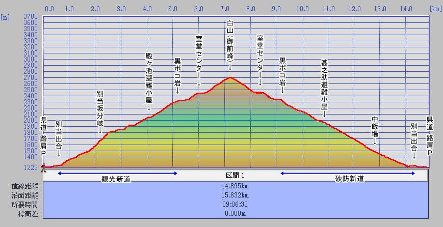 | 14:44 | ⑩ 別当出合 手前県道路肩 P | 総上昇量 novaヤマレコ log | 1505 m | |||||||