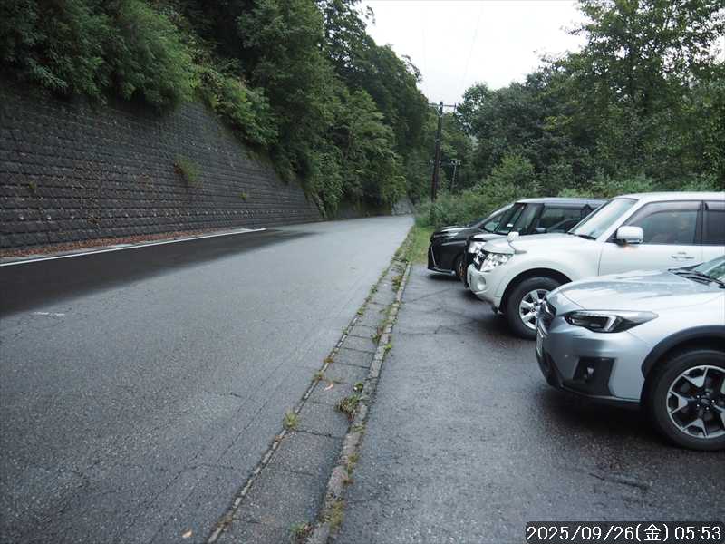 | 「別当出合」手前の県道33路肩駐車場 |