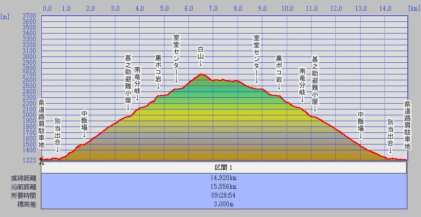 | 2702m | 10:29~10:37 | 0:08 | ⑤ 白山(御前峰) Ⅰ△2702.0 | 【車中泊地】道の駅;恐竜渓谷かつやま | ||||||